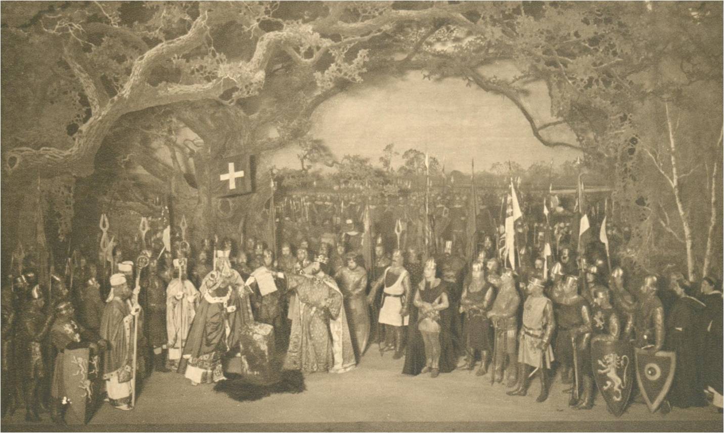 Tree’s production also doubled as a celebration of the Magna Carta. During the action, Tree inserted a tableau that depicted John handing over the document to the barons. King John actually sealed rather than signed the Magna Carta, and you can discover more about seals by clicking here.